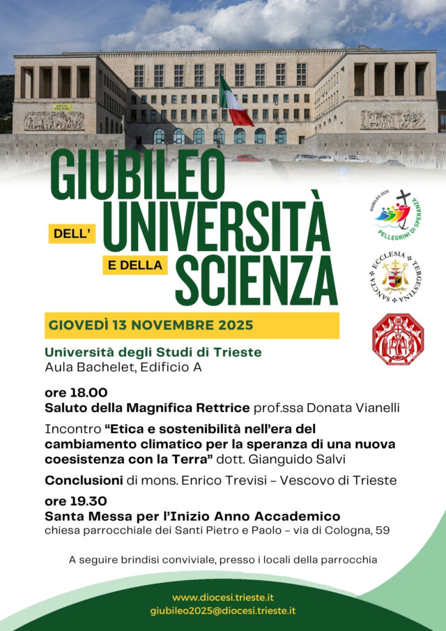 Giovedì 13 novembre 2025, Trieste vivrà il Giubileo dell’Università e della Scienza, appuntamento dedicato al mondo accademico e scientifico nell’ambito del Giubileo 2025. L’evento si terrà presso l’Università degli Studi di Trieste, nell’Aula Bachelet dell’Edificio A, e rappresenterà un momento di incontro e riflessione tra fede, scienza e responsabilità etica.