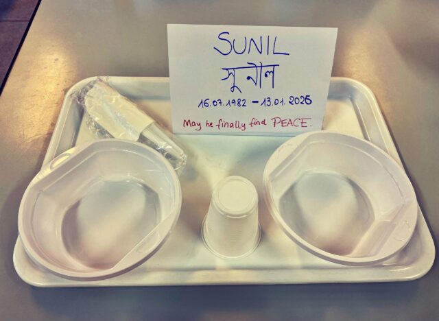 In questi giorni, il vassoio di Sunil è rimasto lì. Nessuno – che fosse nepalese, afghano, pakistano, italiano – si è seduto su quel posto o ha spostato il vassoio. Un segno di rispetto profondo. Più di qualcuno degli ospiti avrà pensato che quanto capitato a Sunil sarebbe potuto capitare a lui. E, nel silenzio di questo umanissimo pensiero, la memoria di Sunil – सुनील nome di origine sanscrita che significa “cielo limpido, azzurro e aperto”, “profondo blu” che porta con sé connotazioni di bellezza e divinità – resta, come monito per ciascuno, a cercare e offrire sempre umanità e, per chi lotta ogni giorno per sopravvivere, come sostegno per vedersi riconosciuto, prima di altri diritti, il diritto fondamentale a essere visto e trattato come persona.