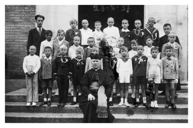 Don Francesco Bonifacio con i giovani e il Vescovo a Crassiza.