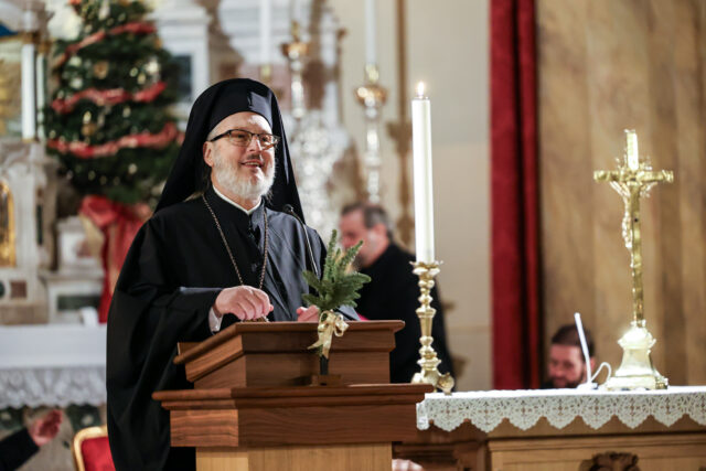 Il centro è stata la proclamazione della Parola di Dio nelle letture (Is 58, 6-11 e Ef 4, 1-13) e nel Vangelo (Gv 12, 31-36), illuminati dall’omelia del vescovo Athenagoras Fasiolo (Patriarcato Ecumenico Sacra Arcidiocesi Ortodossa d’Italia) che inizia dando il tono alla celebrazione: