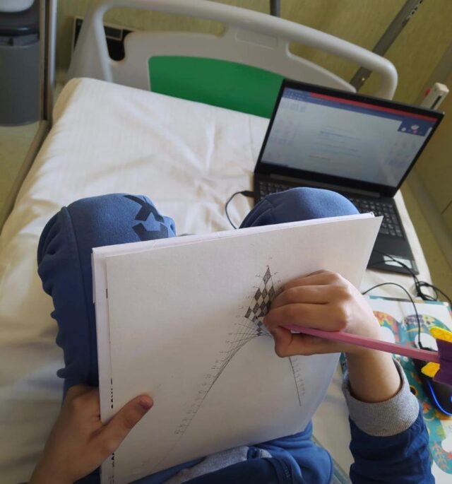 Collaboriamo con i medici, i genitori e tutte le figure che abitano un mondo che non è quello della scuola. Noi lì non siamo il centro. Siamo ospiti graditi, perché il nostro lavoro fa parte integrante del percorso di cura, ma pur sempre ospiti. Il nostro lavoro non si conclude dentro gli spazi dell’ospedale: i fili della vita di apprendimento dei nostri alunni sono costantemente intrecciati con le loro scuole di appartenenza, con cui manteniamo un rapporto di stretta collaborazione. Malattia e salute devono continuare a parlarsi per mantenere un legame tra gli spazi della cura e la vita scolastica fuori dall’ospedale.