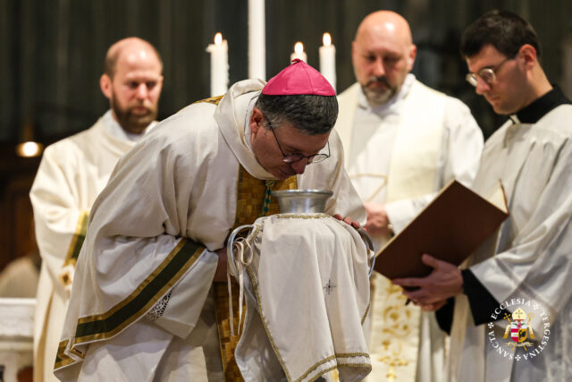 “santifichi quest’olio misto a profumo, e coloro che ne riceveranno l’unzione siano interiormente consacrati e resi partecipi della missione di Cristo Redentore”.
