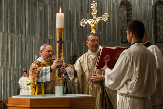 La “madre di tutte le veglie” racchiude tutta la potenza della liturgia cristiana, in un susseguirsi armonico di parole, gesti, simboli, canti, silenzi… I grandi momenti tipici della veglia sono il Lucernario, la ricchissima Liturgia della Parola, la Liturgia battesimale. A questi momenti segue la Liturgia eucaristica, vero e vivo memoriale della Pasqua del Signore.